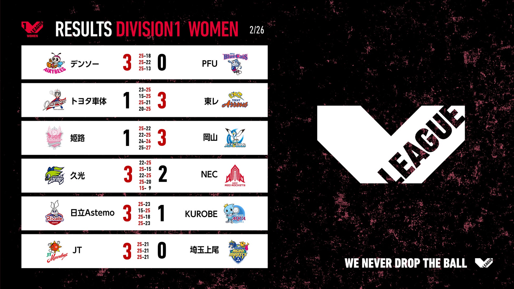 バレーボール国内最高峰リーグ V.LEAGUE【2月26日の試合結果】