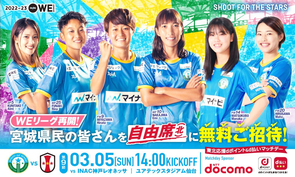 この試合は、2023年最初のホームゲームの開幕を記念して、宮城県民のみなさまを「自由席北」へ無料ご招待いたします。ぜひ女子サッカーの臨場感をスタジアムでご体感ください★