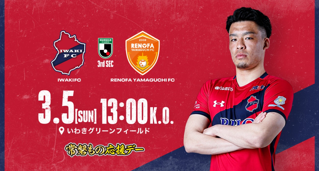このたびいわきFCは、3月5日(日)2023明治安田生命J2リーグ第3節 レノファ山口戦(13:00キックオフ/いわきグリーンフィールド)を「常磐もの応援デー」として開催いたしますので、お知らせします。「常磐もの応援デー」を通じて、いわきFCの選手が普段の食事に取り入れている福島県産の海産物”常磐もの”の魅力を発信していきます。