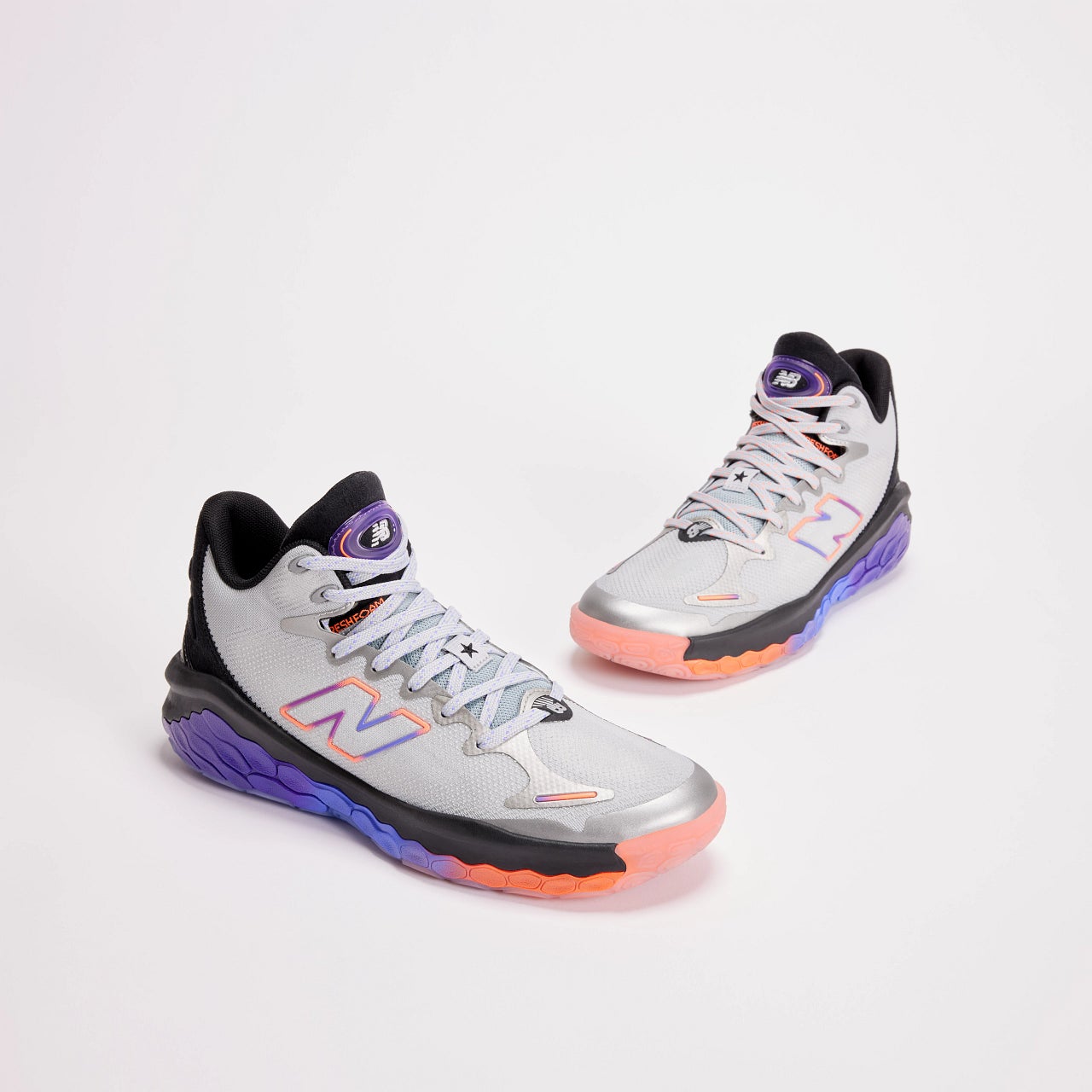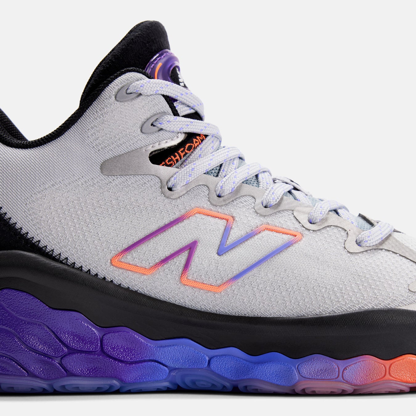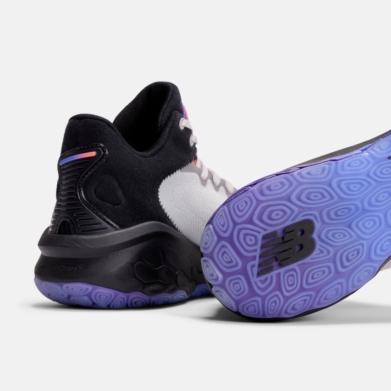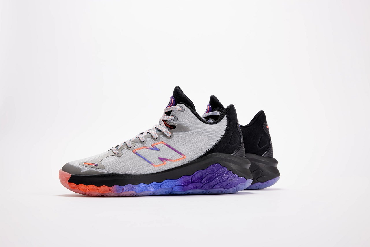 ポジションレスな今日のゲームの中で、第4クォーターでもフレッシュなパフォーマンスを発揮するためのクッション性と安定性を高次元で提供するため、ニューバランスで最も優れたクッション性を誇るFresh Foam Xをミッドソール全面に採用。快適な高い走りを実現するとともに、シューズ横のTPUケージがコート上での鋭い切り替えしを可能にする安定性をプラスします。シームレスで軽量なワンピースタイプのFitWeaveアッパーは、360度のサポート力と快適性を提供します。