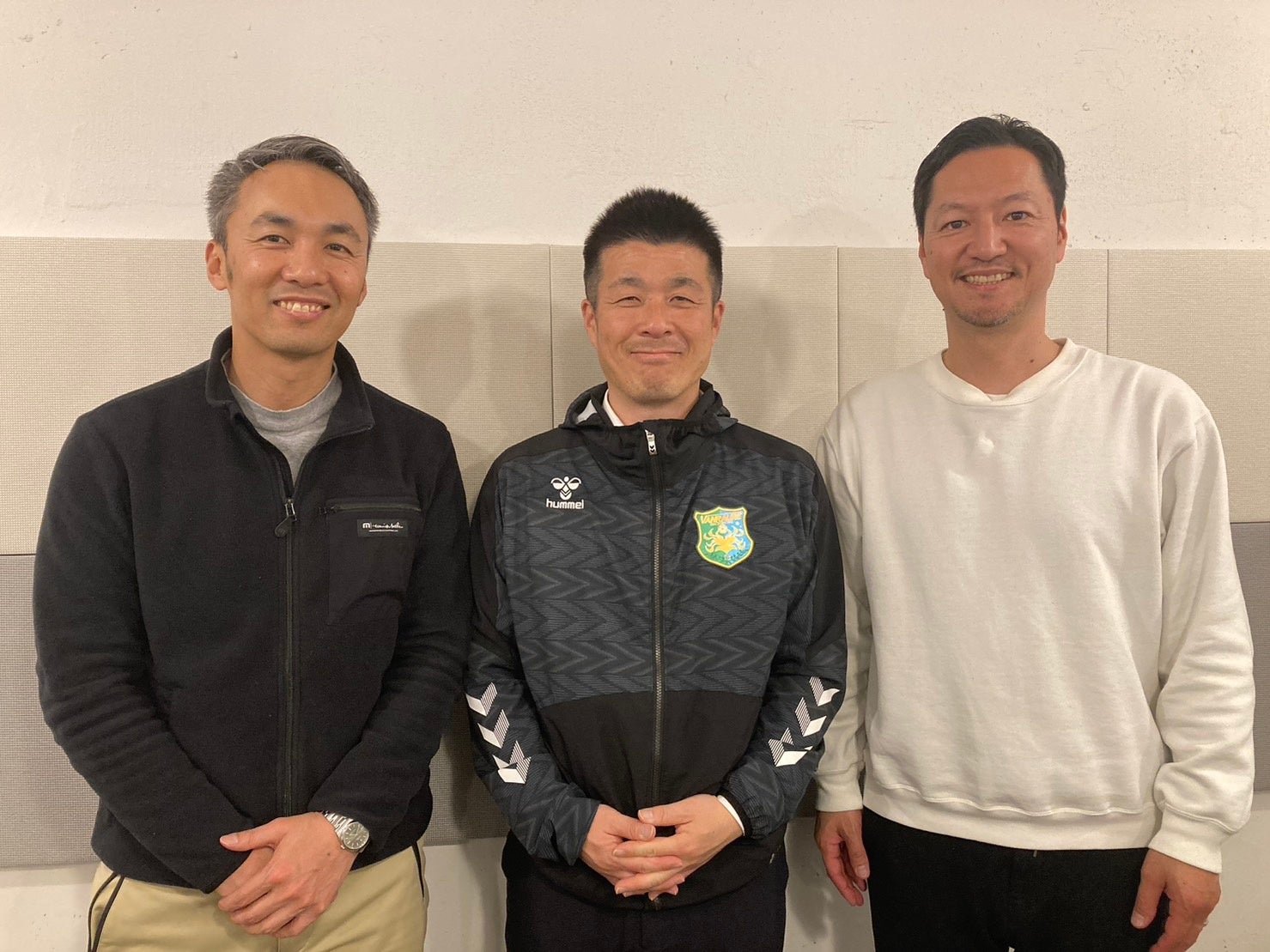 (左)代表理事 榎本考修 (中央)ヴァンラーレ八戸下平賢吾社長 (右)MC古田優児さん
