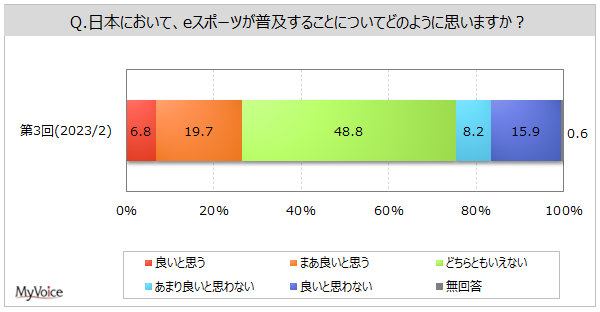 マイボイスコム株式会社(東京都千代田区、代表取締役社長:高井和久)は、3回目となる『eスポーツ』に関するインターネット調査を2023年2月1日~5日に実施しました。調査結果をお知らせします。