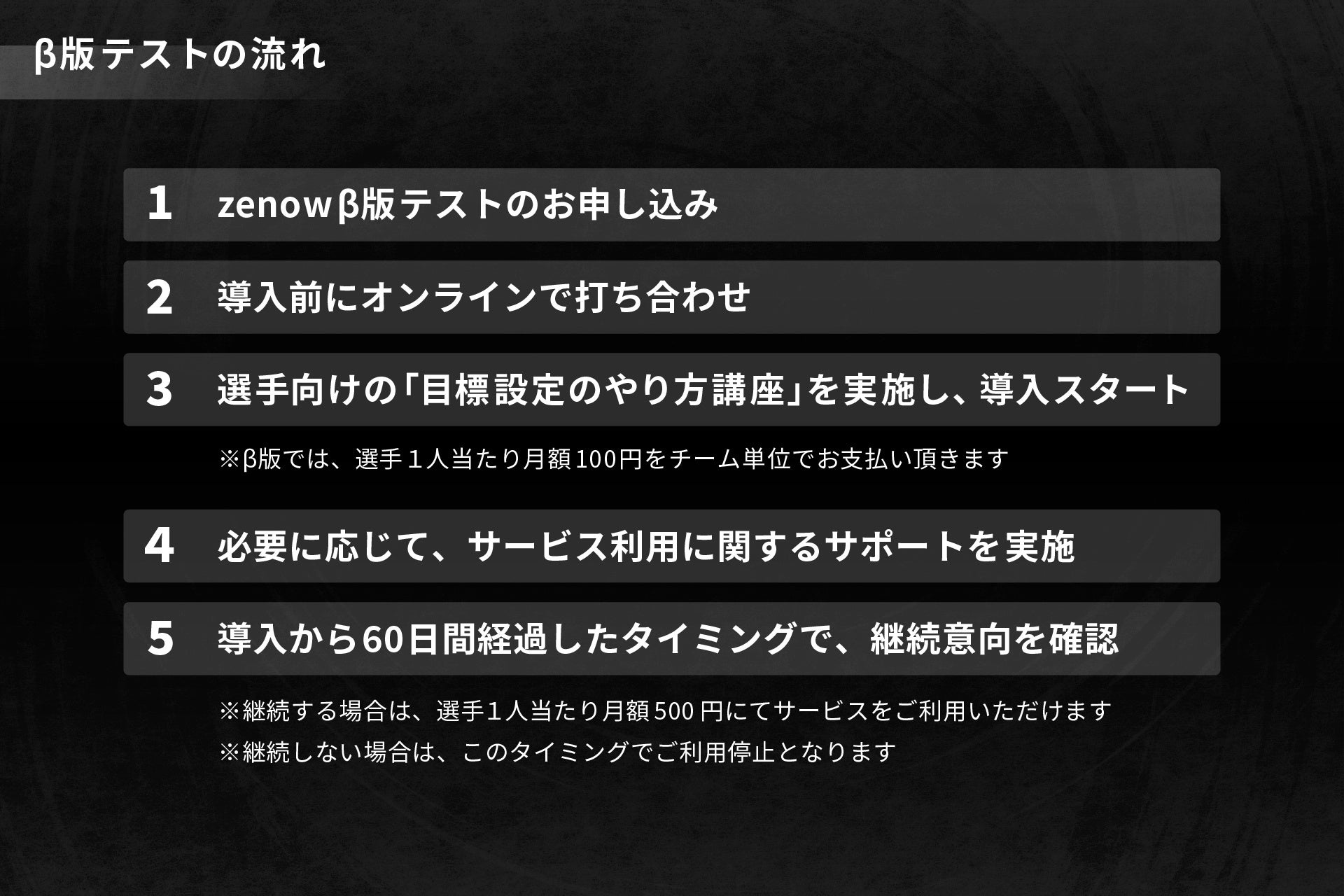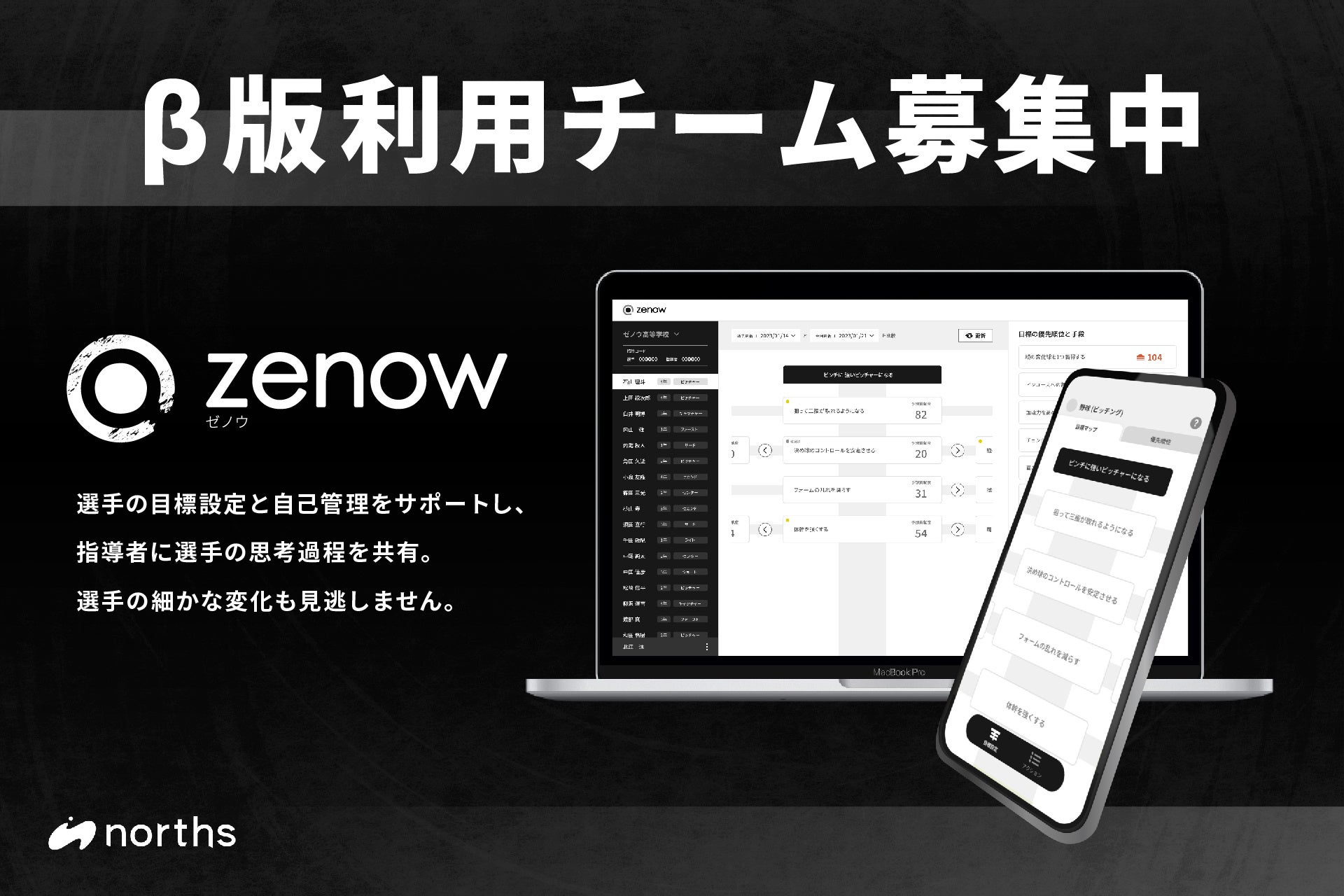 筑波大学発のベンチャー企業である株式会社norths(ノース)[本社:茨城県つくば市、代表:池田卓史(叶卓史)]は、高校生以上のスポーツ選手とその指導者を対象に、選手の目標設定と自己管理をサポートするアプリ『zenow(ゼノウ)』のβ版利用チームを募集開始しました。