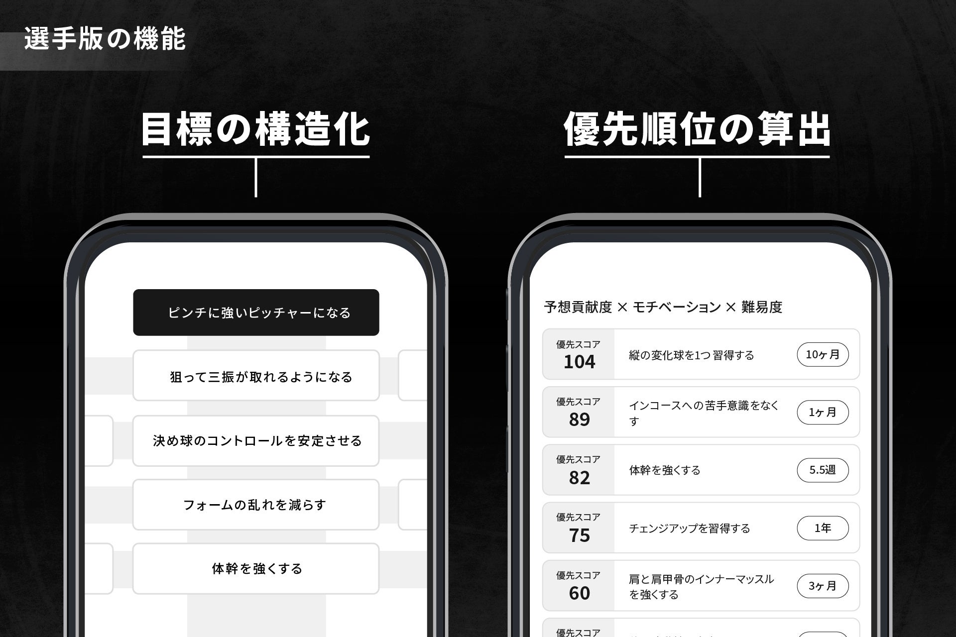 我々は、この2つの問題を解決するためには、選手自身で目的意識を向上させることができ、さらに指導者も短時間で選手の思考過程や変化を把握できる仕組みづくりが必要だと考え、サービスの開発に至りました。