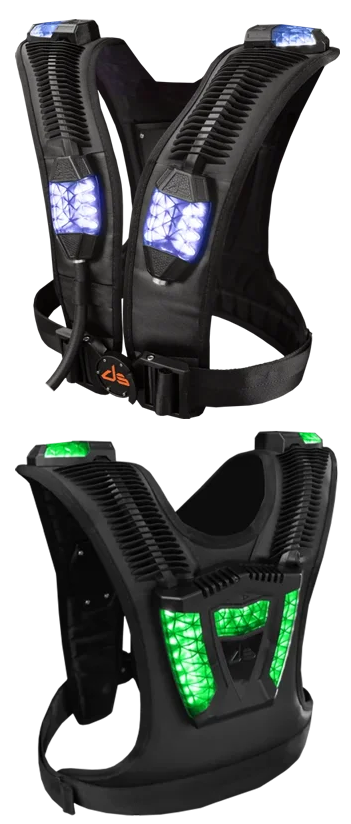 銃から放たれるレーザー光線を受信し、ダメージを視覚的、体感的に再現する“Laser Tag Vest”には、100個以上のLEDやスピーカーが内蔵されています。非常に頑丈にもかかわらず軽量で、動きやすさを追求したスタイリッシュなデザインになっています。センサーが前面に2個、肩に2個、背面に1個と計5個のセンサーにより、レーザーの光を受信します。リアリティと緊張感を高めるため、被弾時にバイブレーション機能が発生し、ゲームにより一層エキサイトする事が出来ます。