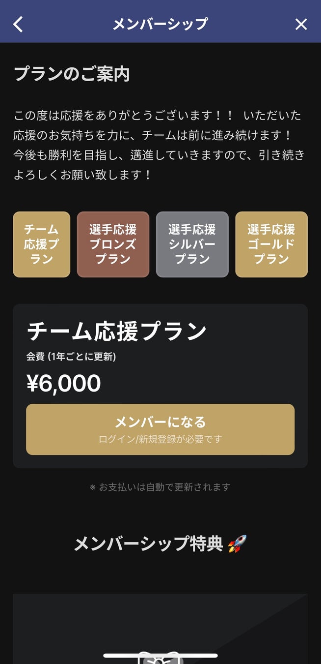 メンバーシップ機能からファンクラブ会員になって頂くと、チームから特別なグッズをお届けします!