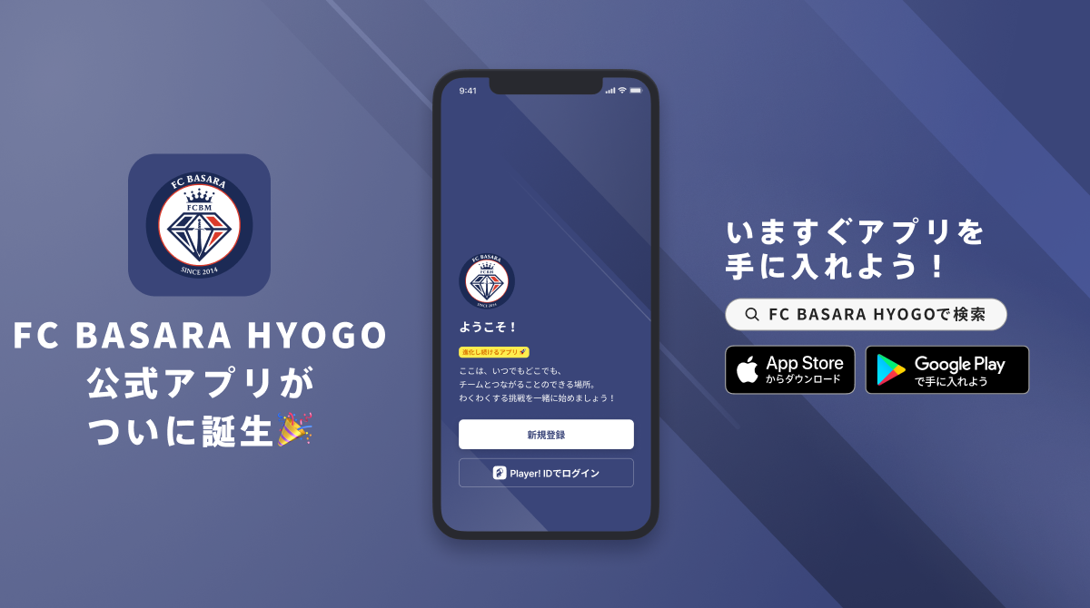 AppStoreもしくはGooglePlayで「FC BASARA HYOGO」と検索!