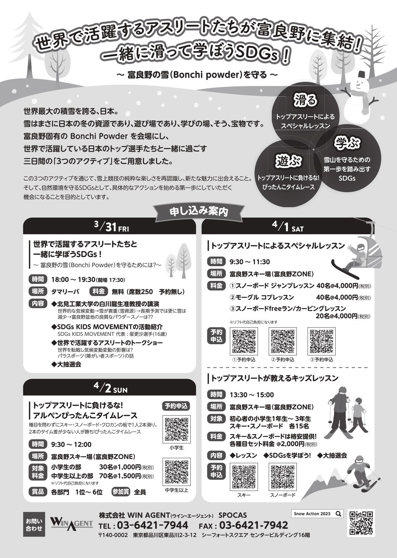 株式会社WIN AGENT(本社:東京都品川区、代表:渡辺 孝司)が運営するアクティブイベント「Snow Action 2023 in富良野」(主催:SNOW ACTION実行委員会)を開催いたします。