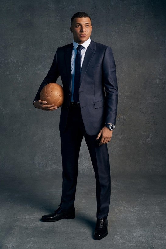 「ザ・ベスト・FIFAフットボール アワーズ」に登場したキリアン・エムバペは、ディオール メンズ コレクションからネイビーウールのピークド ラペル スーツにクラシックなホワイトコットンシャツ、ネイビーシルクの「ディオール オブリーク」 タイ、ブラックレザーダービーシューズを着用しました。