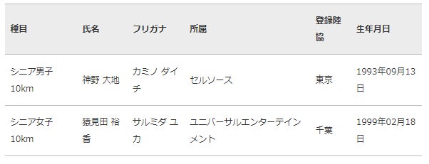 本大会には「マラソングランドチャンピオンシップ(MGC)」の出場権を獲得している神野大地(セルソース)、初の日本代表となる猿見田裕香(ユニバーサルエンターテインメント)がエントリー。