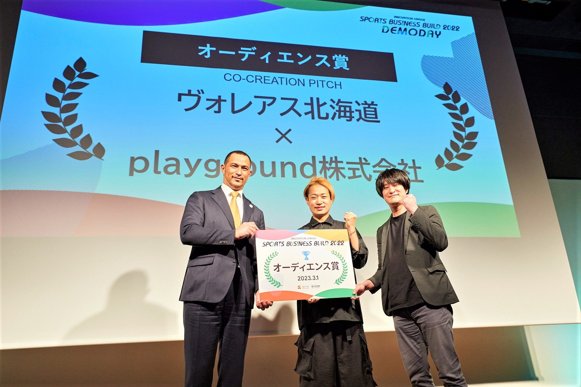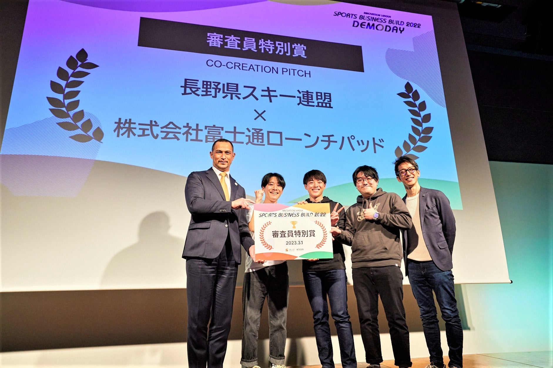 本DEMODAYの中で実施したピッチでは、「審査員特別賞」に、公益財団法人長野県スキー連盟(スキー・スノーボード)・株式会社富士通ローンチパッドのプロジェクト「スキーをもっと上達できもっと誰かと繋がれる」が、「オーディエンス賞」に、ヴォレアス北海道(バレーボール)・playground株式会社のプロジェクト「旭川に未だ見ぬ熱狂と誇りの共創を生み出す~ヴォレアスの推し活が自分であり街の誇りになる世界の実現」がそれぞれ受賞しました。