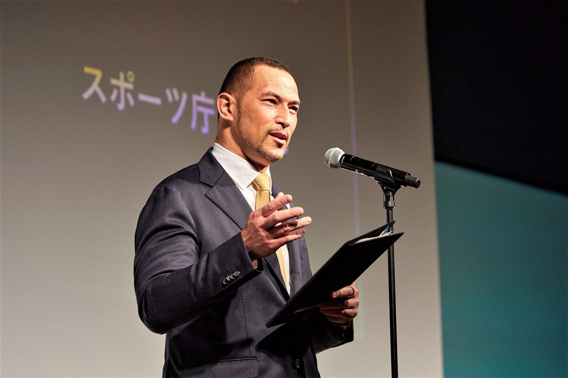 『 INNOVATION LEAGUE SPORTS BUSINESS BUILD 2022 DEMODAY 』 写真中央:室伏広治 スポーツ庁長官 ※撮影時のみマスクを外しています。