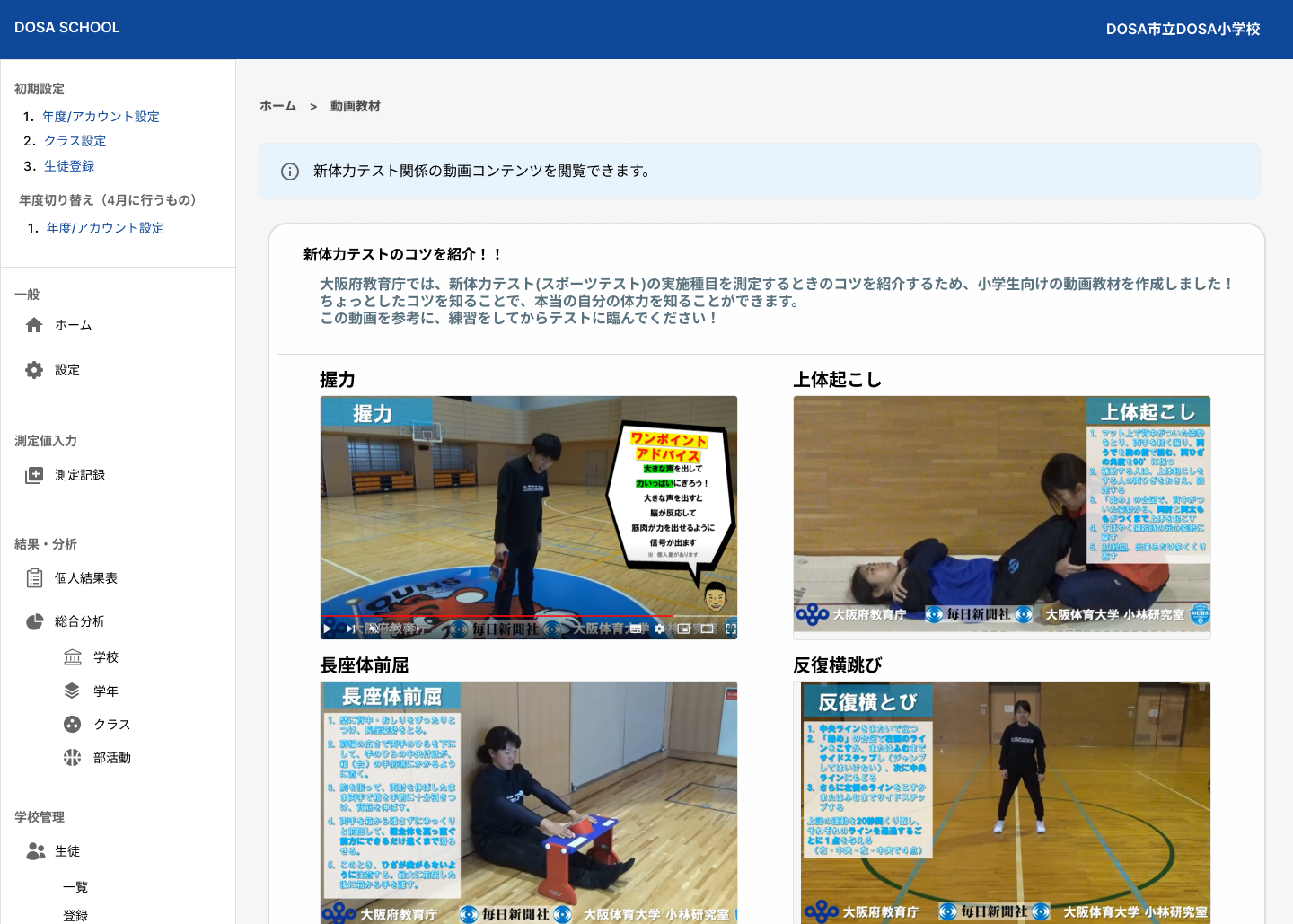 この度、スポーツ能力発見協会は、大阪府「ICT活用による子どもの体力向上事業(小学3・4年生スポーツテスト)に係る学習支援システム制作・運営管理委託業務」における公募型プロポーザルにて、弊社が開発運営を行う『DOSA SCHOOL』を基盤としたシステム制作・運営管理において「子どもや教員が取り組みやすく、体力向上につながる点」や「スポーツテスト後の充実したアプローチ」、「教員への負担を掛けない仕組みや工夫」が高く評価され、最優秀提案者として選定されました。(※1)