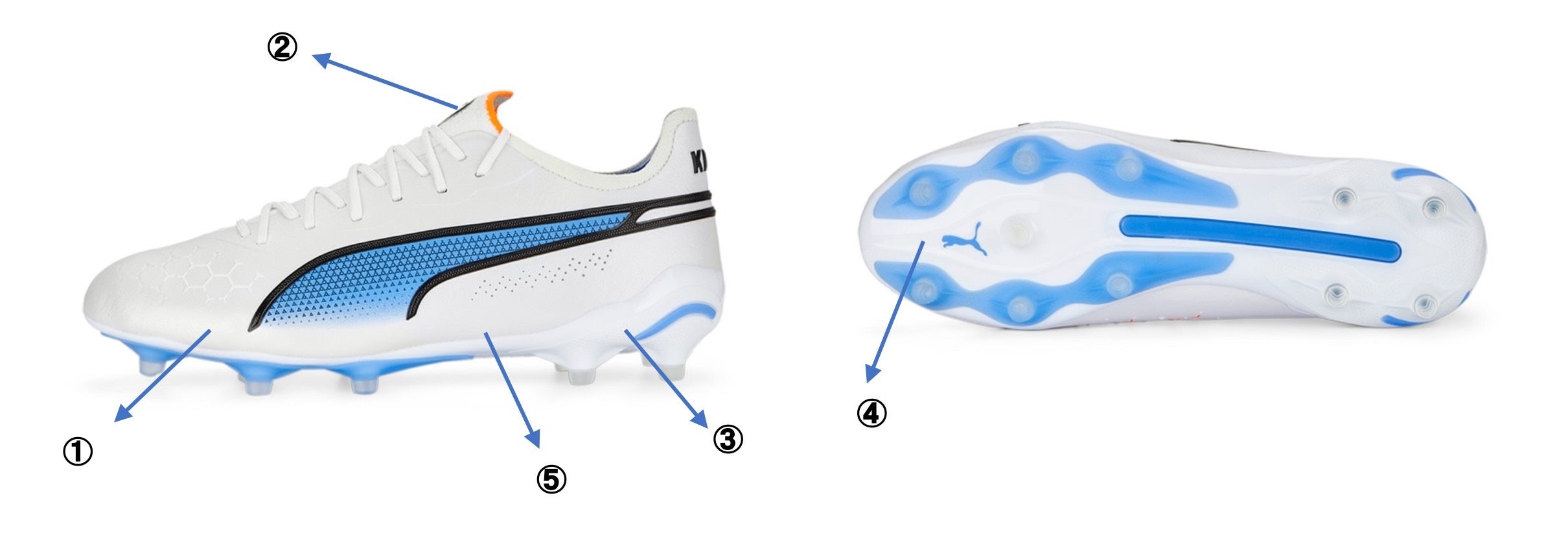 「KING」は、ディエゴ・マラドーナやペレなどの伝説的なプレーヤーが着用し、数十年にわたりサッカー界を席巻し てきたモデルです。「PUMA KING ULTIMATE」は、ボールタッチやフィット感、耐久性のテストにおいて、従来の 「KING」に採用されていたカンガルーレザーより優れた非動物性の新素材「K-BETTERTM(ケー ベターTM)」を採用し、最新のテクノロジーとともに新たに生まれ変わったモデルです。また、アッパーには、20%以上のリサイクル素材が使用され、環境に配慮したモデルになっています。