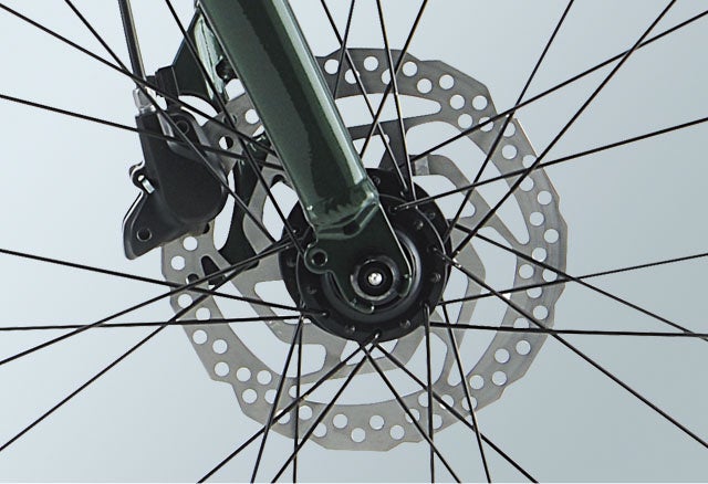 全天候で高い安定性を発揮する油圧ディスクブレーキを採用。ブルー・ダークシルバーはニュアンスのあるフェードカラー。フォレストグリーンは女性専用バイクLiv「ESCAPE R W DISC LTD」とペアカラーとなっています。