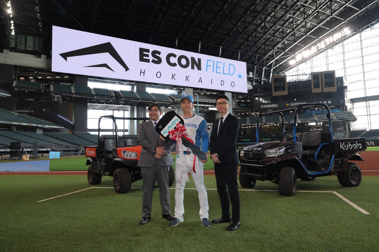 株式会社ファイターズ スポーツ&エンターテイメント(北海道北広島市/代表取締役社長:川村 浩二 以下「ファイターズ」)は、株式会社クボタ(大阪府大阪市/代表取締役社長:北尾 裕一 以下「クボタ」)の多目的四輪車(ユーティリティ ビークル)2台をリリーフカーとして導入いたします。ファイターズとしては北海道に本拠地移転後、リリーフカーは初導入となります。