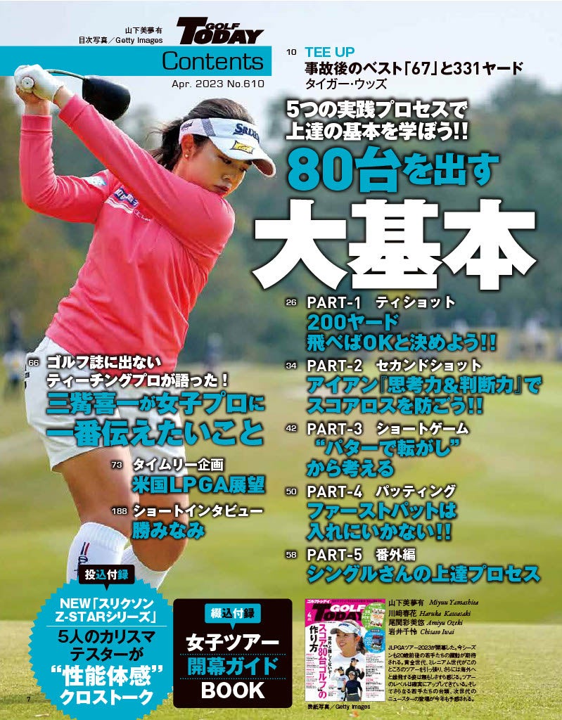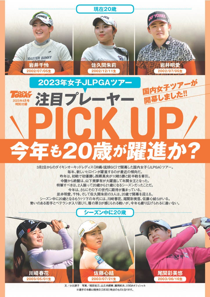 - 綴じ込み付録は、開幕する女子ツアーに合わせて「注目プレーヤーのPICKUP」ガイド。今年も20歳の若手の活躍が見込まれる要因などを解説。