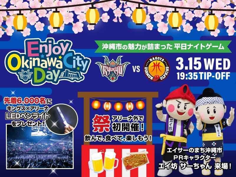3月15日(水)の名古屋ダイヤモンドドルフィンズ戦にて、沖縄アリーナ株式会社主催『春の沖アリ夜市』を開催します。