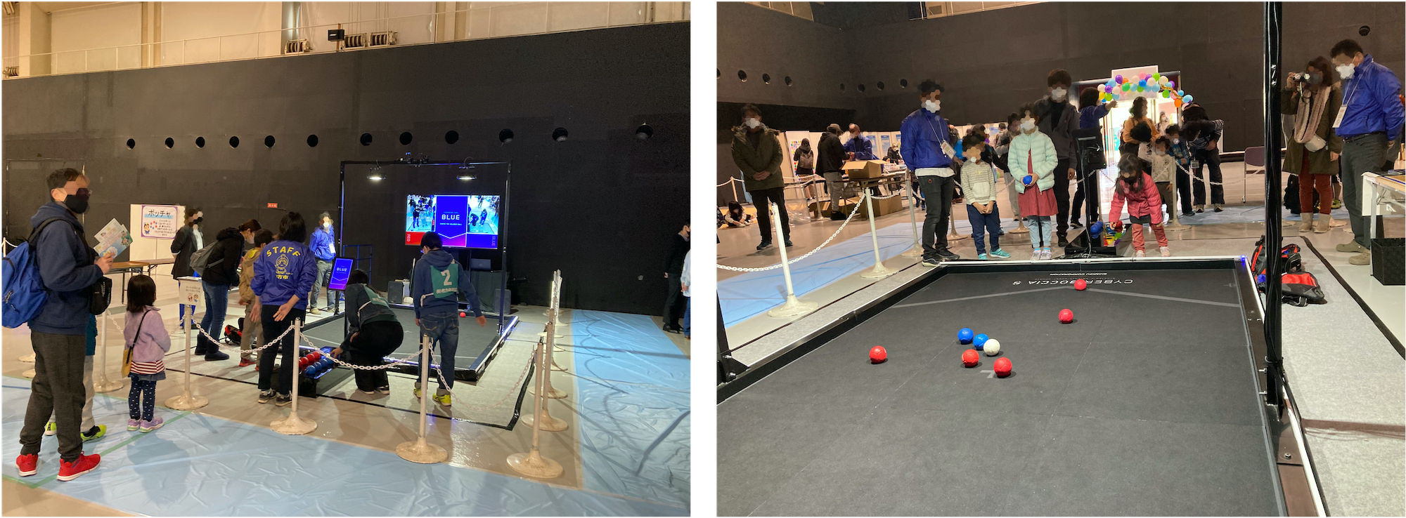 会場では、「サイバーボッチャ」の体験会や、東京都肢体不自由特別支援学校在校生、及びOBOGチームによるインクルーシブスポーツ「ハンドサッカー」のエキシビジョンマッチなどが行われました。