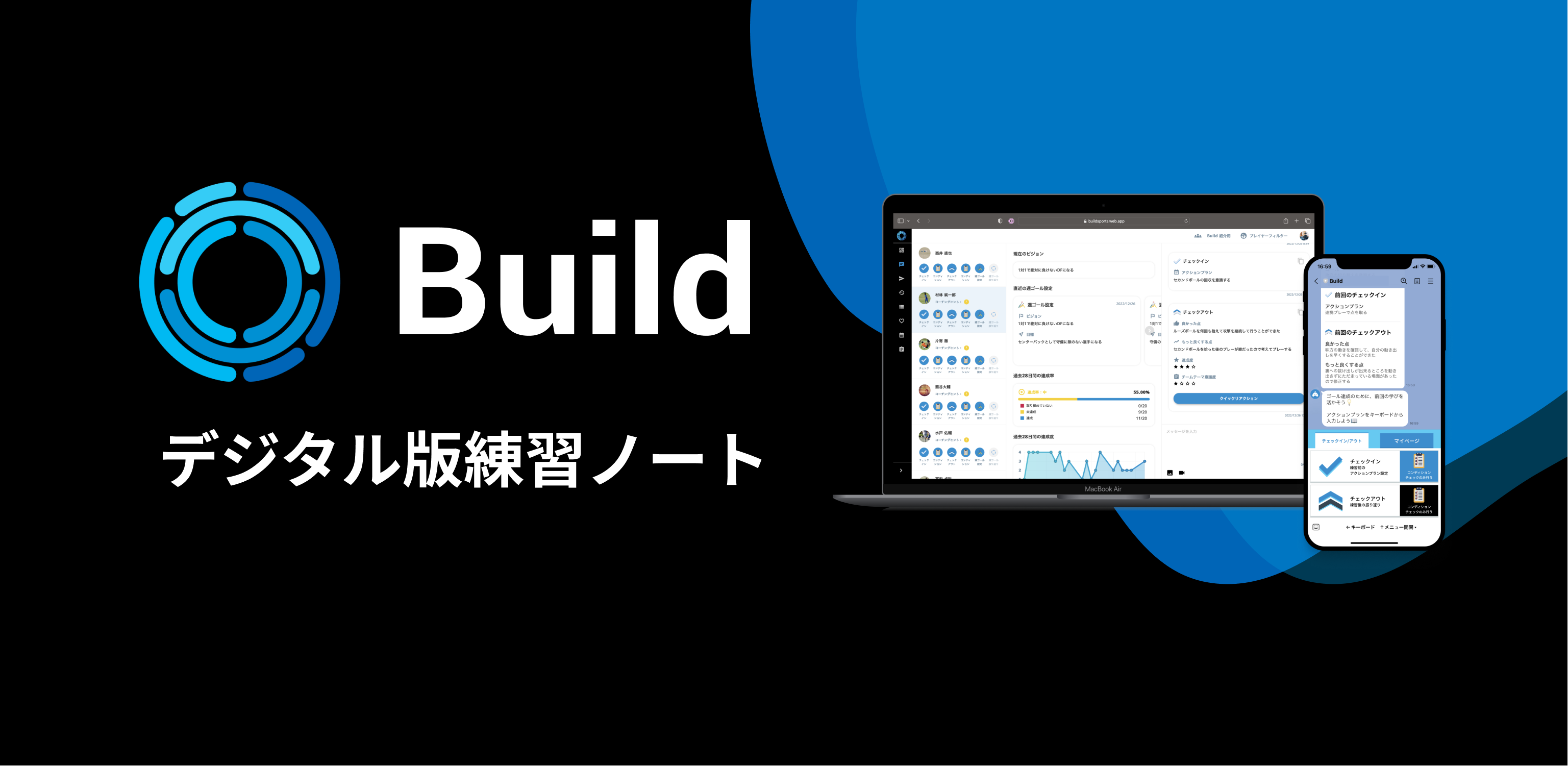 「デジタル版練習ノート Build」 は、選手が考える力を身につけ、チームが成長していく環境を構築します。