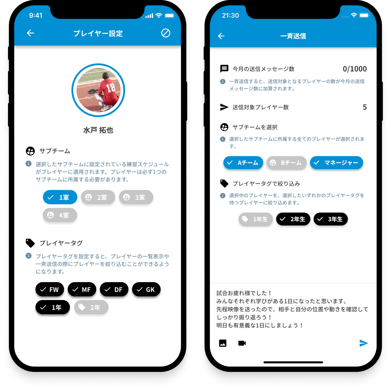 Buildでは「柔軟なカテゴリ分け」「チャットボットの自動サポート」「選手間でのコラボレーション」といった機能により、選手数が多いチームでもチームづくりが楽になります。実際に、100名を超えている複数のチームにも利用していただいており、「選手数が多くても負担なく利用できる」といった声をいただいております。