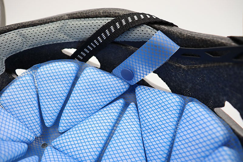 取り付け方はとても簡単で、ヘルメットの内側にスナップボタンで楽に取り付け、取り外しが可能です。
