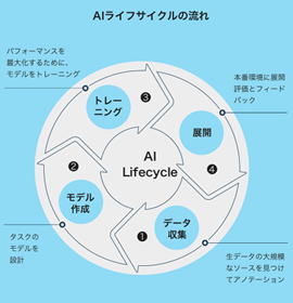 AIにおけるデータプラットフォームには、AIデータの源となる、各分野に分散されている大量かつ多岐にわたるデータドリブンのためのデータを効率的かつ安全に収集、保存、管理することが求められ、これらのAI学習データを適切に保存管理することができる AIデータマネジメントが重要です。AIの成功は、AIアルゴリズムのトレーニングに使用するトレーニングデータの品質と、AIライフサイクルによるメンテナンスが重要な鍵となります。
