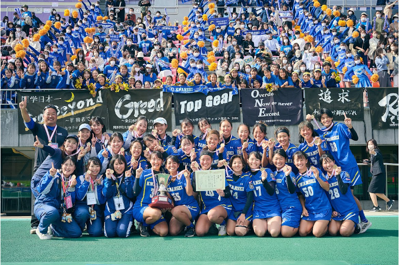 関西学院大学ラクロス部女子は1988年に創設され、これまでに日本一を7回達成するなど全国有数の強豪校である。昨年行われたラクロス全日本大学選手権大会では部員全員がラクロス未経験者でありながらも、準優勝を果たした。ラクロスという競技を通して、関西学院大学のスクールモットーである”Mastery for Service”を体現し、心・技・体・生活全てにおいて日本一に相応しいチームを目指し活動を行なっている。