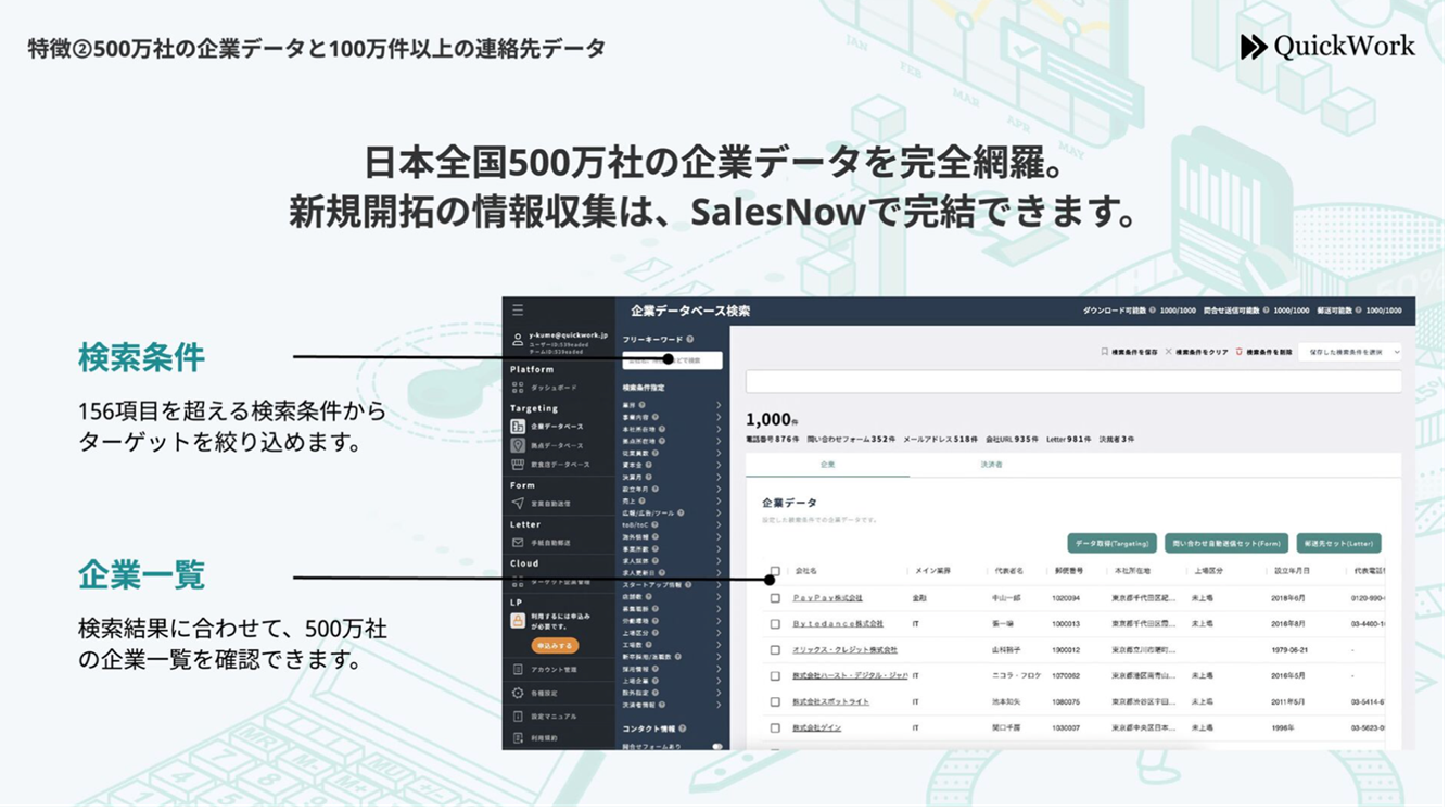-日本全国500万社以上の企業データを基盤に営業の効率化を支援する「SalesNow」 https://top.salesnow.jp/