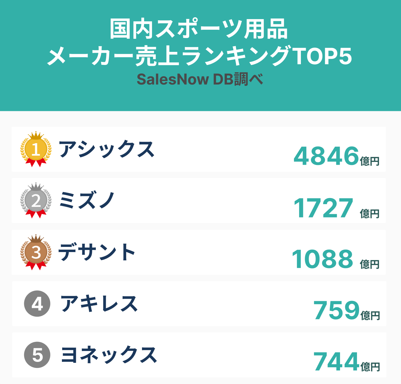 国内スポーツ用品メーカー売上ランキングTOP5について