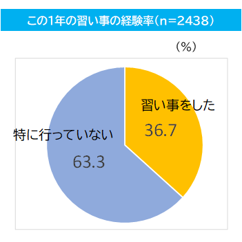この1年(2022年1月~2023年1月頃)の習い事の経験率は36.7%となりました。