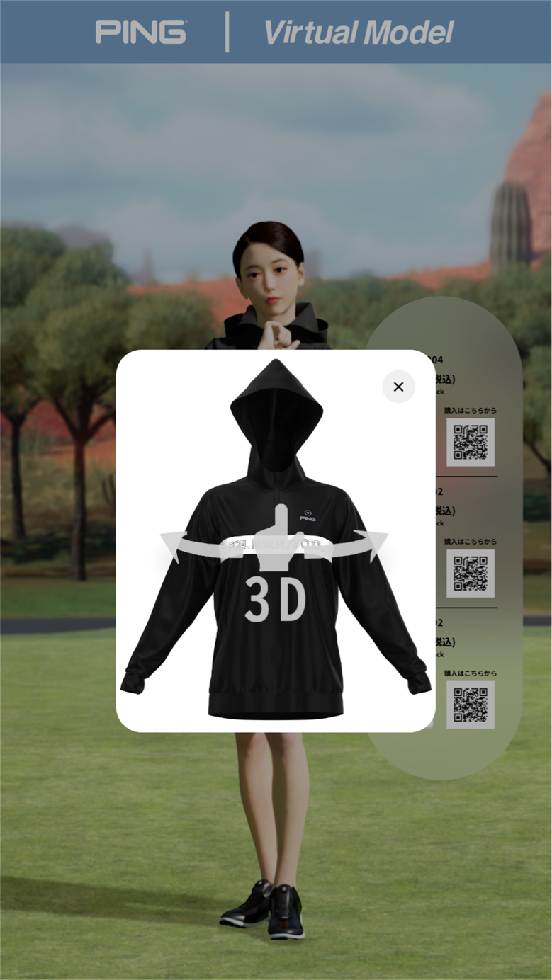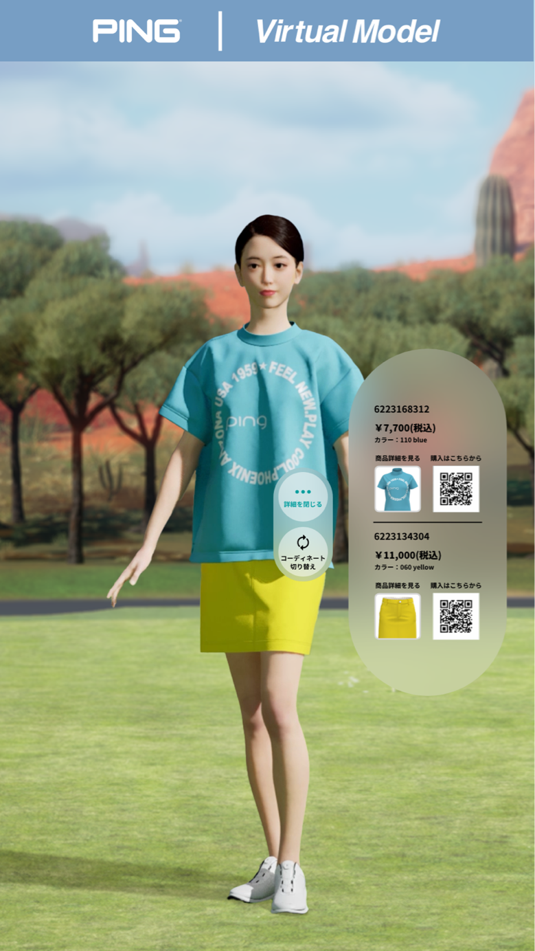 また、コーディネートの各商品の情報や複数視点からの高精細なイメージが確認でき、QRコードを表示してECサイトの商品ページに送客できます。