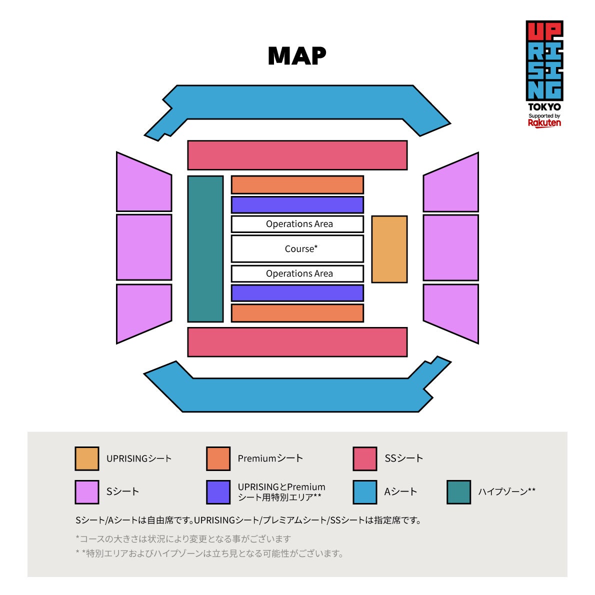 ※Sシート/Aシートは自由席です。UPRISINGシート/Premiumシート/SSシートは指定席です。