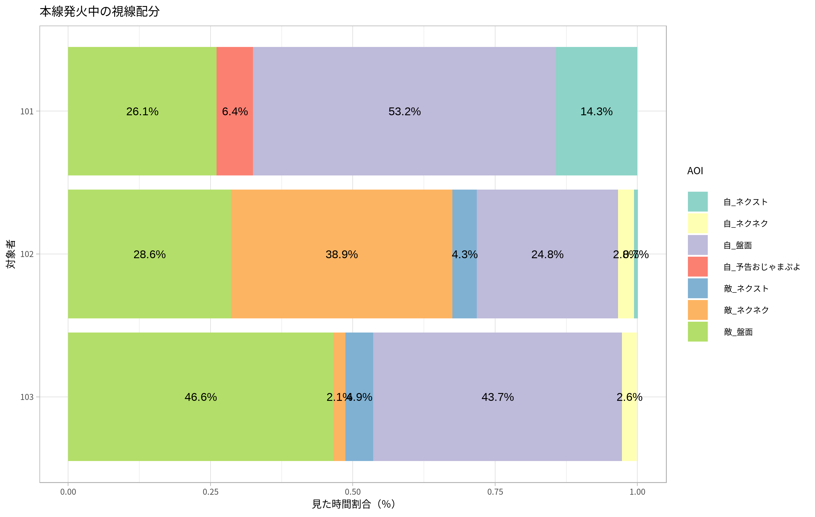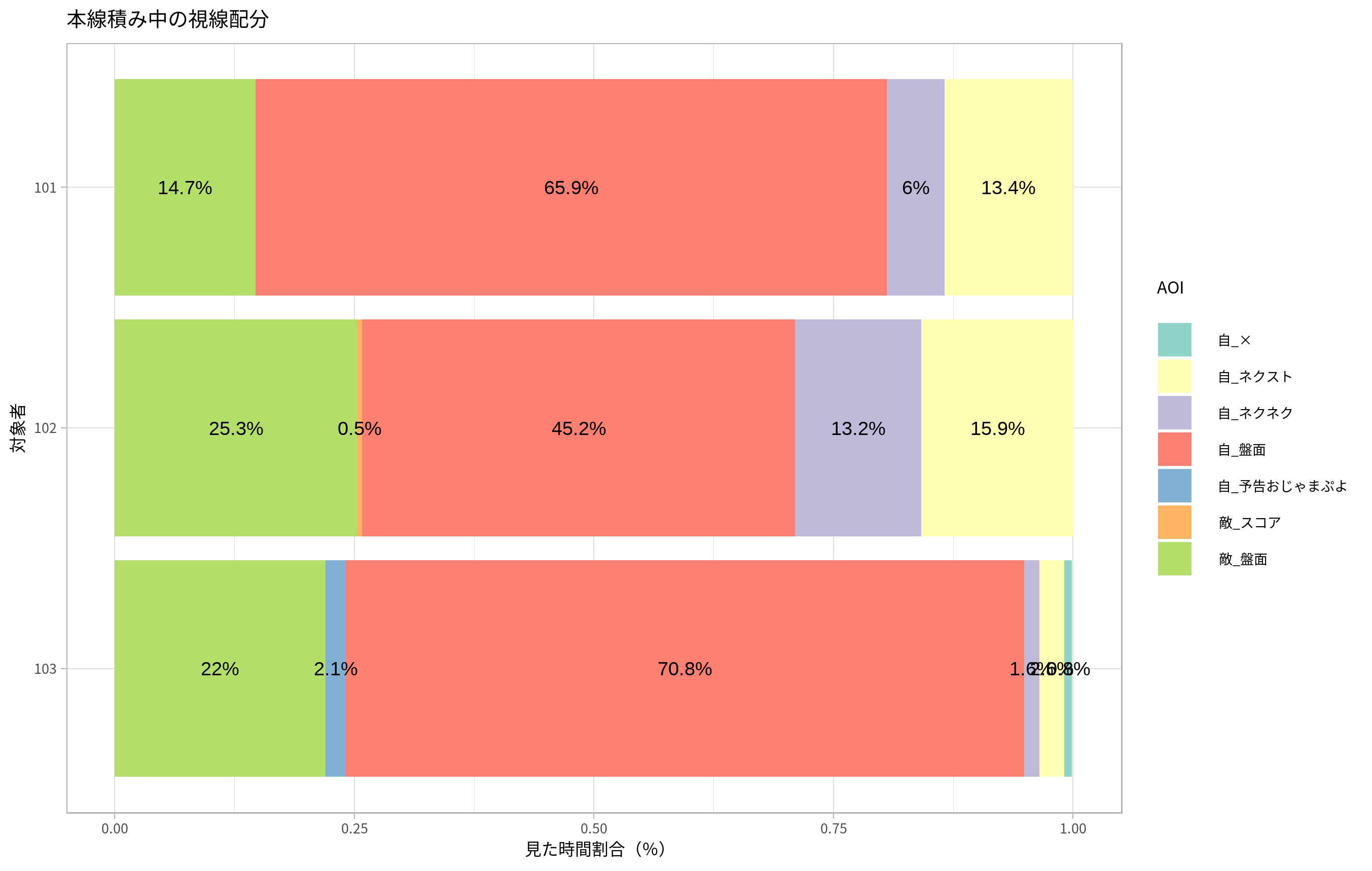 1.本線(大きな「連鎖」)積み中の視線配分(見た時間割合)