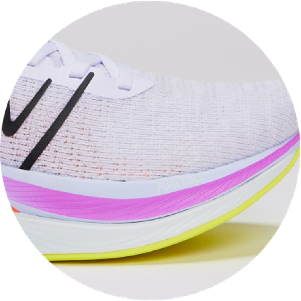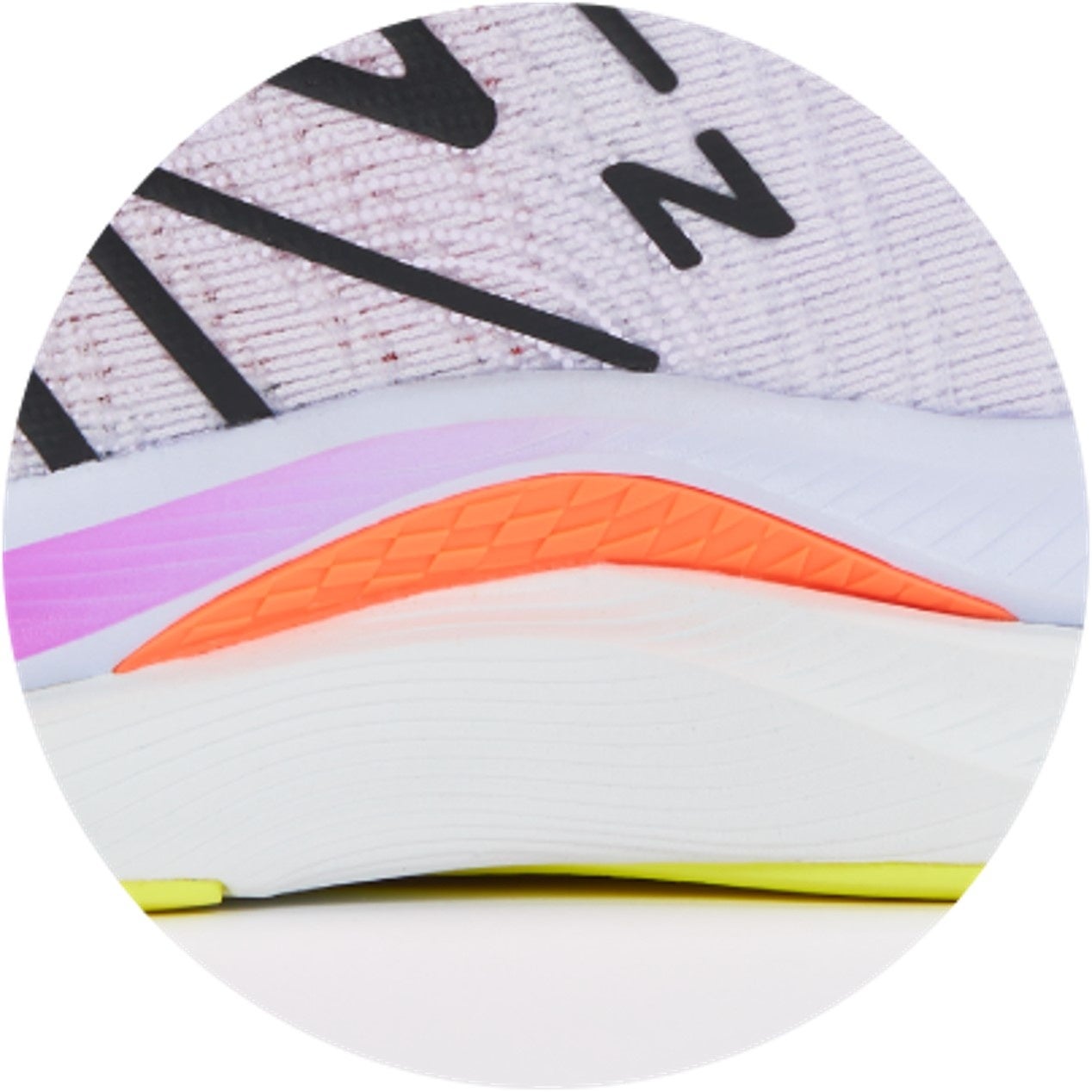 レーシングモデルよりソフトなコンパウンド配合のFuelCellに、カーボンプレートよりしなやかなTPUプレートを内蔵。TPUプレートの反発性を受けながら、安定性も確保され、推進力を実感できる構造。