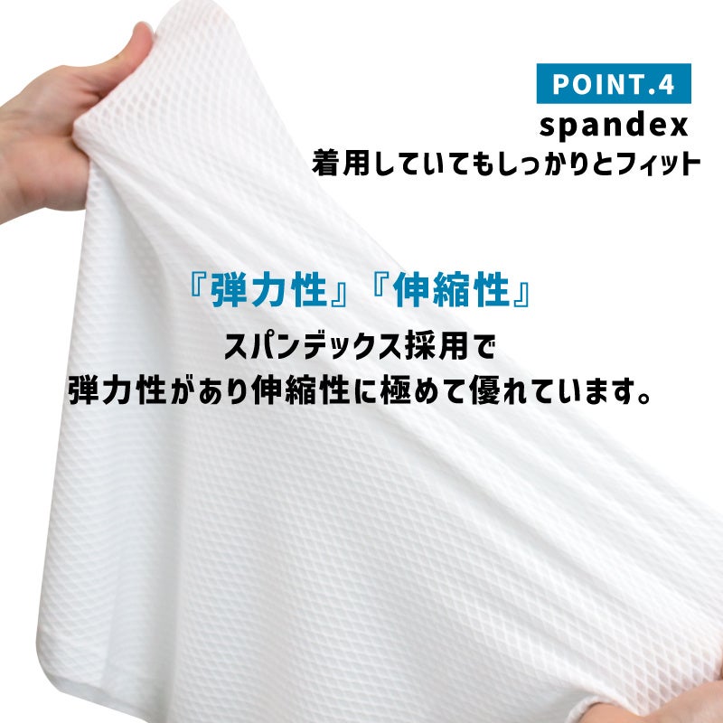 ・胴体周りは透け感のある凹凸材質で汗を素早く吸水。