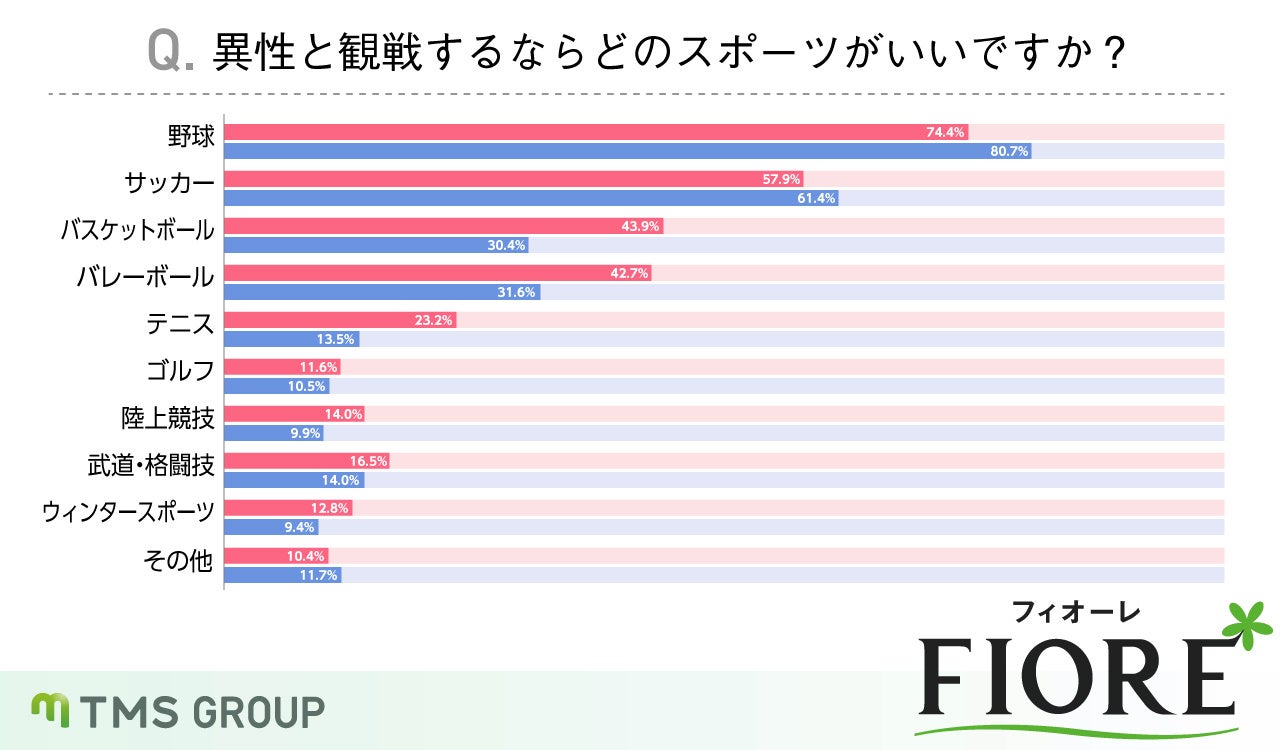 TMSグループが運営する「結婚相談所フィオーレ(https://www.total-marriage.com/)」「フィオーレパーティー(https://www.fiore-party.com/)」は、婚活中の男女を対象に、スポーツ観戦デートについての意識調査を実施いたしました。