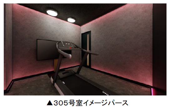 トレーニングブース×2部屋、ランニングブース×2部屋、バイクブース×1部屋、スタジオ×2部屋