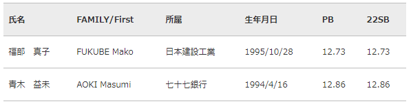 <女子100mハードル>