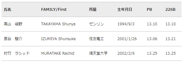 2023年5月21日(日)に日産スタジアムにて開催する「セイコーゴールデングランプリ陸上2023横浜」の、男子110mハードル・男子400mハードル・女子100mハードルに出場を予定している選手を下記のとおりお知らせいたします。(2023年3月14日現在。)