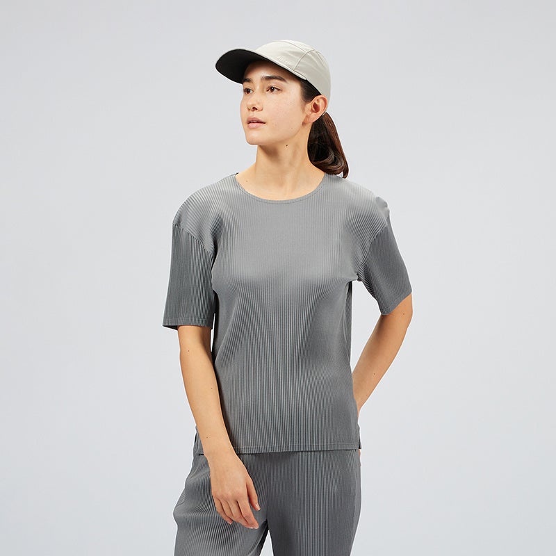 テニスウエアの象徴的なデザインである「プリーツ」を新しいスタイルで提案。ドライタッチな機能素材を使用し、プレイ中も快適な動きが可能なアイテムにアップグレードしました。国内のプリーツ専門工場で加工と縫製を行い、美しいデザインとシルエットに仕上げています。プリーツ幅を細くし、落ち着いた配色にすることで、大人の抜け感を感じさせる、他とは一線を画した新しいプリーツアイテムです。プリーツの持つ柔らかさと伸縮性に合わせ、ドライなタッチ感が特徴です。ウイメンズ・メンズ共に展開します。