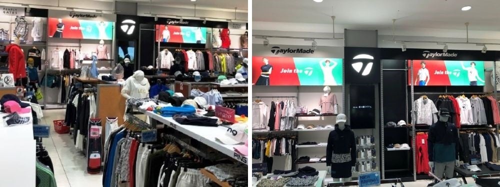 エントリーゴルファーからコアゴルファーまで満足いただける20ブランドを展開。新規展開ブランドのテーラーメイドアパレルコーナーは、地域最大級の品揃え。