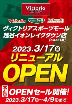 株式会社ヴィクトリア(ゼビオグループ・本社:東京都千代田区神田小川町)は、 2023年3月17日(金)10時、イオンレイクタウンkaze内の総合スポーツ用品専門店「ヴィクトリアスポーツモール 」をリニューアルオープンいたします。