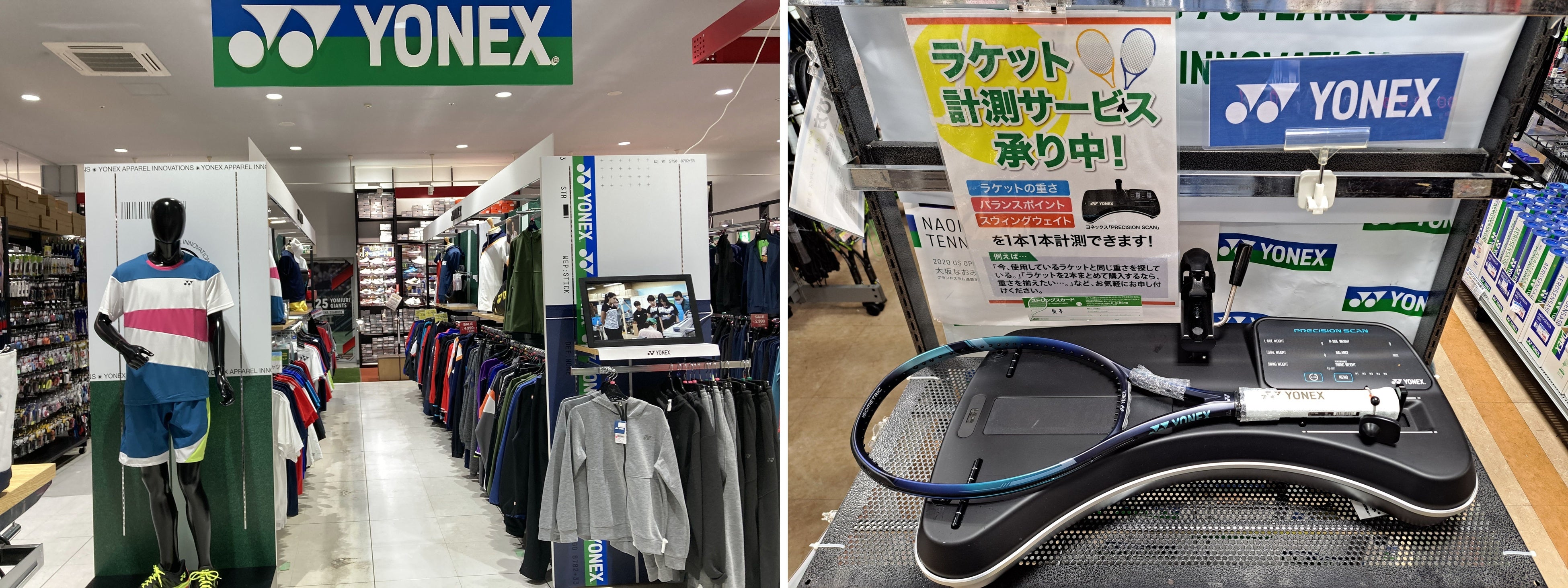 ヨネックスの硬式・ソフトテニス・バドミントンのラケット、シューズ、ラケットバッグまで数多く取り揃え、特にウエアは、ヨネックスアパレルイノベーションを取り入れ、コートで最大限のパフォーマンスを発揮するウェアとして、学生から社会人まで幅広いお客様にご満足いただける品揃えとなっております。ガット張りは最新のストリングマシンを導入。ラケット測定器「プレシジョンスキャン」も導入し、お客様に最適な一本の提供が可能です。また、ミズノバドミントン「BDSS」スペシャルショップ設置による限定品のお取扱いもございます。