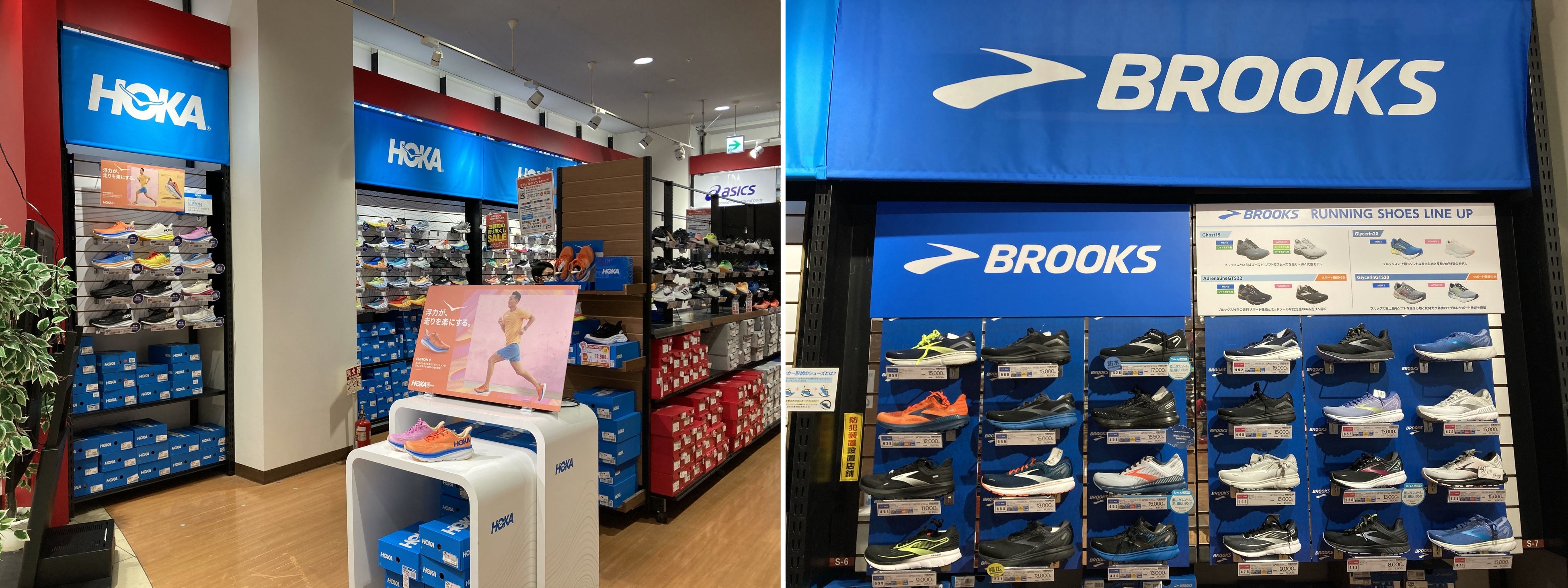 ランニングシューズは、ASICS/HOKA/BROOKSの壁面を使用したブランドウォールを設置し、エントリーからシリアスランナーまで対応する品揃え。新設のNIKEコーナーでは、シューズ+ウエアのトータルコーディネートをお楽しみいただくことができます。タウンシューズはPUMAレディスシューズコーナーを設置、トレンドの厚底スニーカーまで多数取り揃えております。