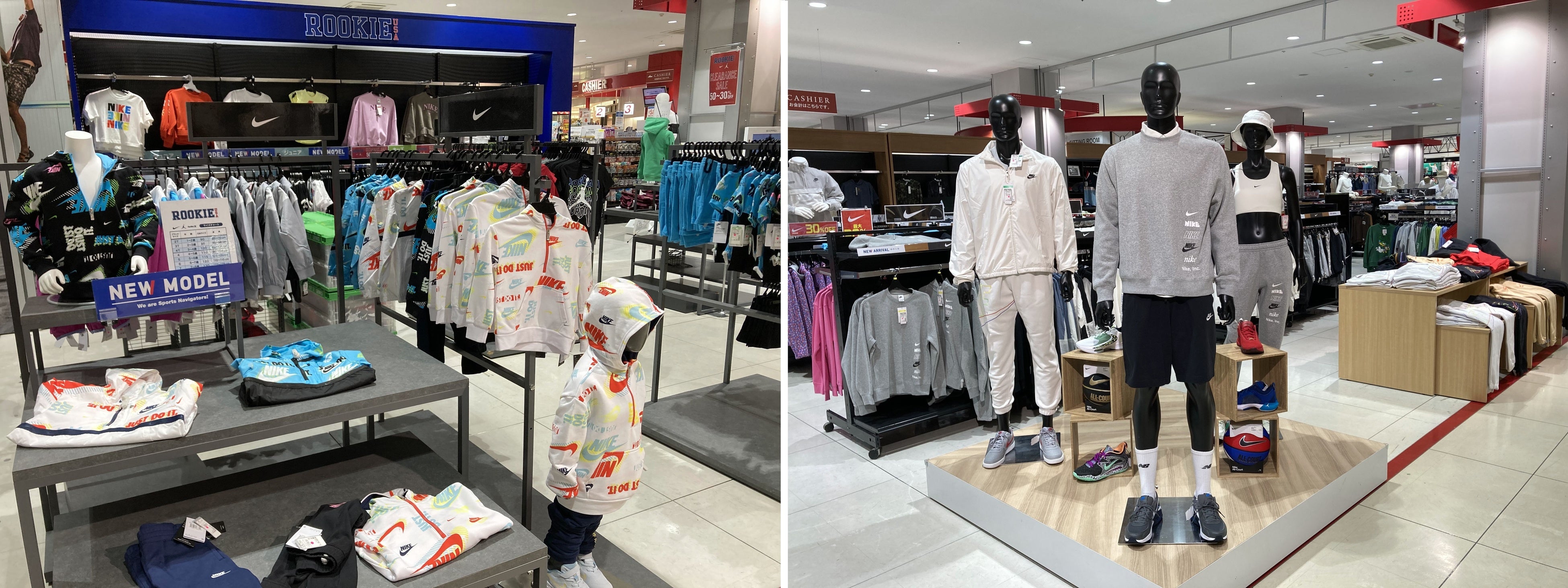 バスケットアイテム世界No.1の売上シェアを持つNIKEを中心としたバスケットの世界観をプレイヤーからライフスタイル層へ提案するコーナーへリニューアル。「 ZONE OF HOOPS+ 」に加え、バスケットシューズ学生シェアNo.1ブランド「アシックス」は、関東最大級の品揃え。