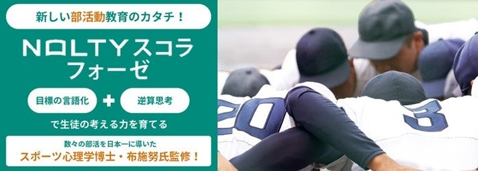 NOLTYプランナーズが4月から発売する「NOLTYスコラ フォーゼ」では、部活動を通して生徒一人ひとりがスポーツ心理学のライフスキル(=好きなことを通して社会で必要なスキルを学ぶ)の思考法やフレームワークを習得することや、部活内で自分が果たすべき役割などを考える力を育成するサポートをいたします。