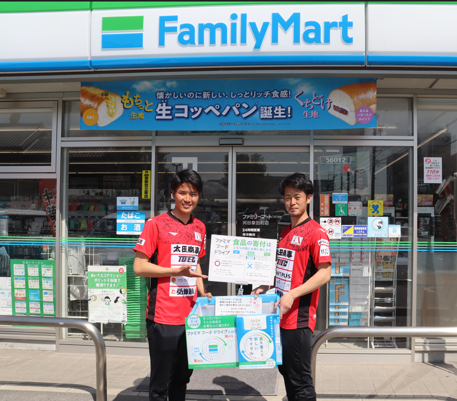 この度、ファミリーマート刈谷泉田店と刈谷築地店にてファミマフードドライブで集まった食品の回収をFC刈谷選手またはスタッフが月に2回実施してまいりますのでお知らせいたします。