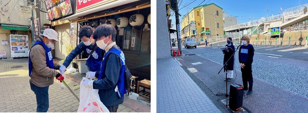 会場の小田原駅前東通り商店街周辺は、多くの飲食店が集まるエリアであり、また地域住民が小田原駅に向かうために通行するルートです。普段から自治会などが清掃活動をしているので、それほど多くのごみは集まらないのではないかと予想されていましたが、参加チームの積極性もあり傘や不燃物など予想を超える量が集まりました。特に多かったのは、たばこの吸い殻でした。東通り商店街様に開会式の場所をご提供いただき、周辺に住む方々からも応援をいただきました。