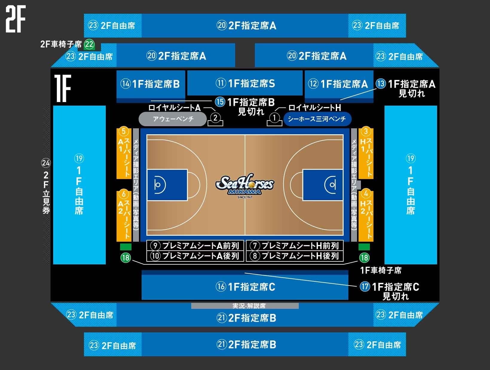 ※1F自由席の前列3席分は見切れ席となります。着席の際は十分にご注意ください。